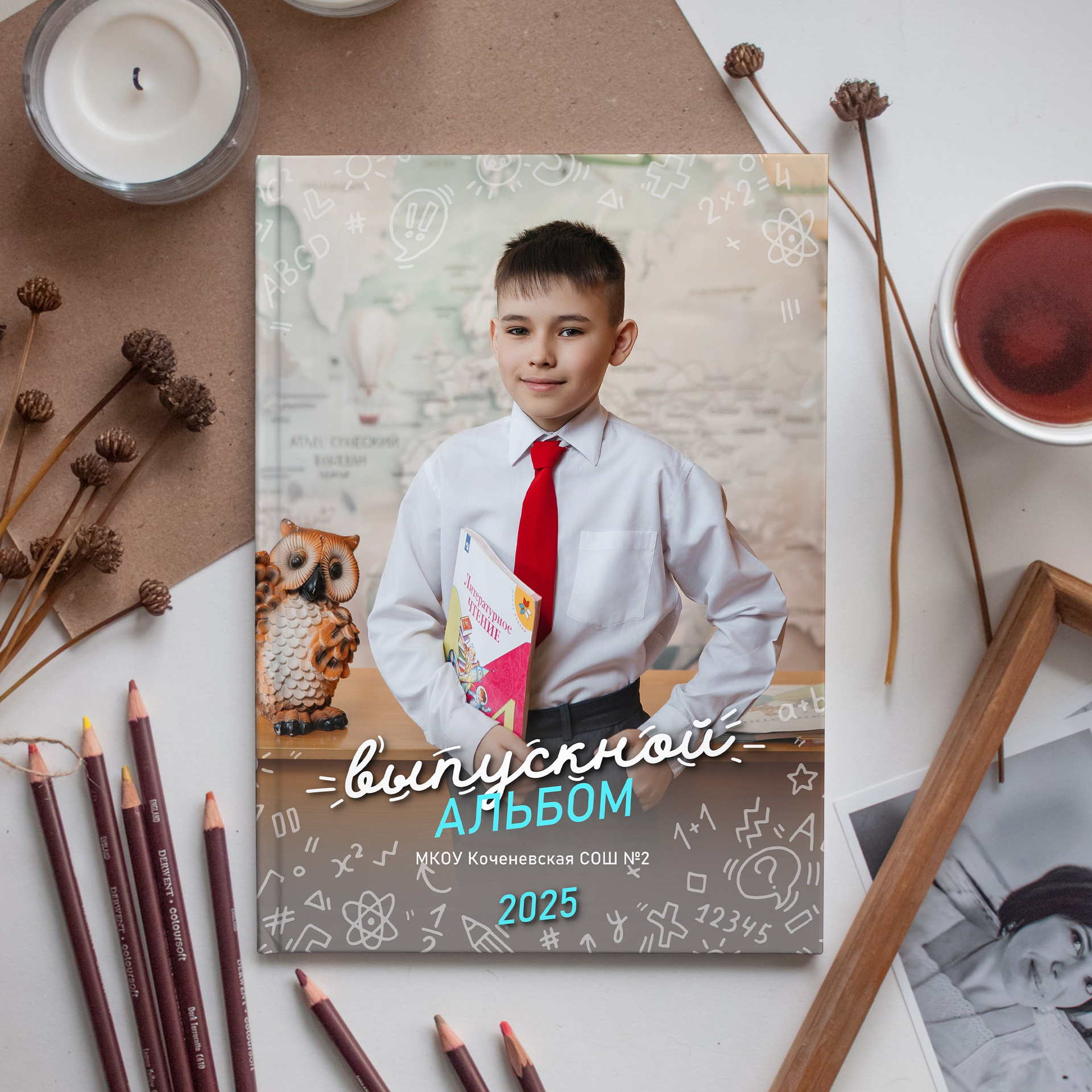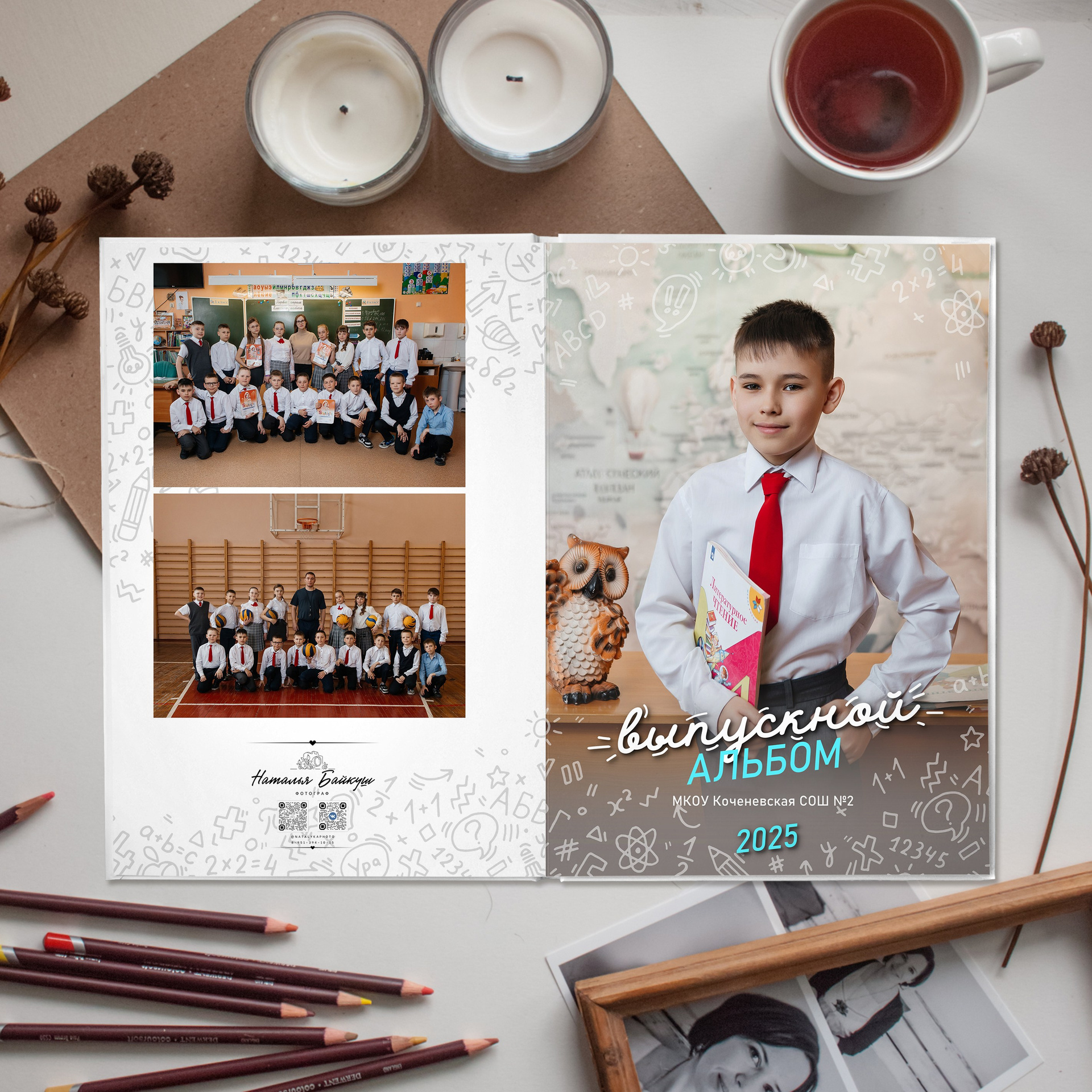 Фотокнига на 2 разворота, в твёрдом переплете с твёрдыми листами с ламинацией для выпускников школ и детских садов. Разворот 180’. Формат книги а4, книжная ориентация. От 2 разворотов.
